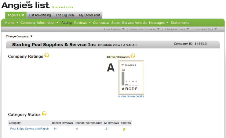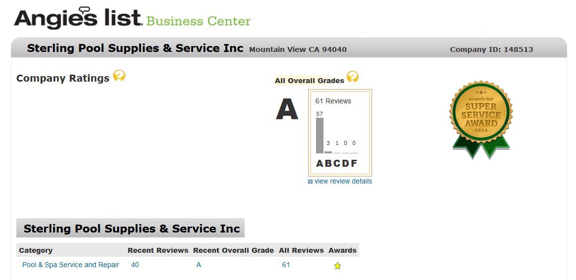 Sterling Pools has been Awarded an Angie’s List Super Service award every year since 2010.